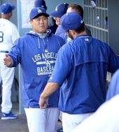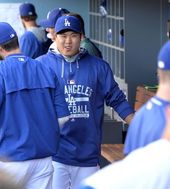 2015.05.03 11: 54류현진,'훈훈한 미소로 팀 동료들 격려'