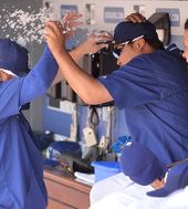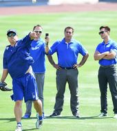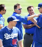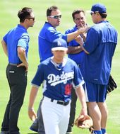 2015.05.04 06: 09캐치볼 후 류현진 왼쪽 어깨 살피는 다저스 코칭스태프
