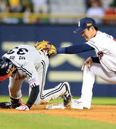 2015.05.06 19: 47김재호, '박용택, 엉덩이라도 태그'