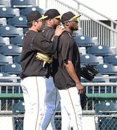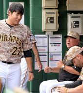 2015.05.08 08: 10밀리터리 유니폼 입은 강정호,'코치진의 응원 받으며~'