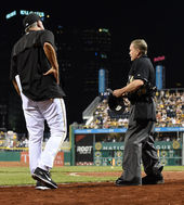 2015.05.09 11: 09야속한 구심 바라보는 강정호,'타임 사인 했잖아요'