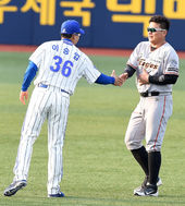 2015.05.14 18: 22김태균,'이승엽에 정중한 인사'