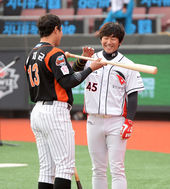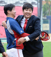 2015.05.15 17: 22정민철 해설위원-김종국 코치,'반가움에'