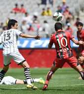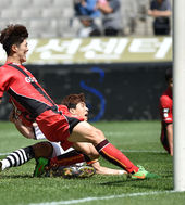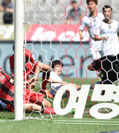 2015.05.16 14: 37고명진,'골대로 몸을 날리며 슛! 전남 자책골 이끌어내'