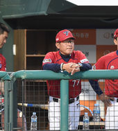 2015.05.26 19: 37최희섭,'김기태 감독 뒤에서 타격 연습'
