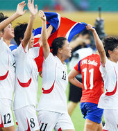 2015.08.08 20: 43우승 기뻐하는 북한,'인공기 휘날리며'(동아시안컵)