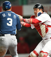 2015.10.02 19: 12모창민,'스퀴즈 번트 틈타 홈으로 뛰었지만 태그아웃'