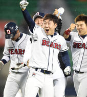 2015.10.10 17: 30환호하는 두산, 9회말 2사 극적인 동점