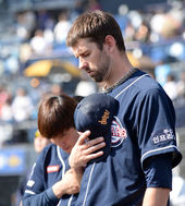 2015.10.18 14: 17가슴에 손얹은 니퍼트,'엄숙한 국민의례'