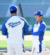 2015.10.31 15: 11정근우,'강민호 배트 좀 만져볼까'