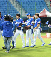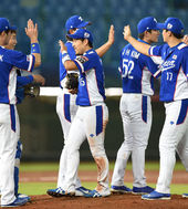 환호하는 프리미어12 대표팀,'내일도 이기자'