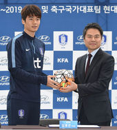 2015.11.11 16: 24기성용,'현대차에 대표팀 사인볼 선물'