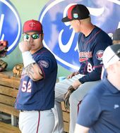 2016.03.03 05: 45동료들과 함께 경기 지켜보는 미네소타 박병호