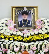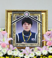 2016.04.04 13: 45태극마크를 달고 금메달을 든 쇼트트랙 노진규의 영정