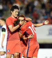 2016.06.06 20: 47선제골 문창진, 류승우와 포옹