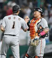 2016.07.07 22: 14조인성,'심수창! 마무리 잘 했어'