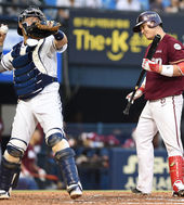 2016.07.07 19: 46박동원, '유희관 공에 절레절레'