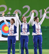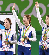 2016.08.08 05: 47女양궁 8연패 신화 기록한 장혜진-최미선-기보배