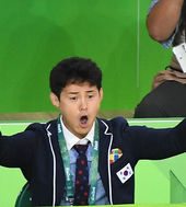 2016.08.08 04: 42기뻐하는 최민호 코치,'바울아, 잘했다'