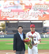 2016.09.09 19: 10KIA 김주찬 개인통산 100홈런 달성 시상식