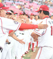 2016.09.09 19: 11개인 통산 100홈런 시상식, 축하받는 김주찬