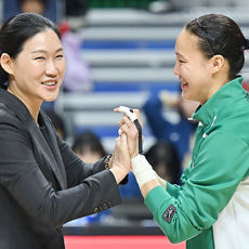 2026.02.07 13: 53박정은 감독과 손 맞잡는 하나은행 김정은