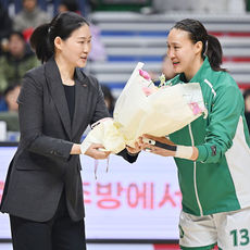 2026.02.07 13: 53박정은 감독의 꽃다발 받는 하나은행 김정은