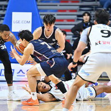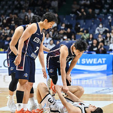 2026.02.15 15: 28충돌로 넘어진 이윤기가 걱정되는 허웅과 허훈