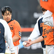 2026.03.28 18: 27'끝내기' 강백호 향해 기념구 전하는 심우준