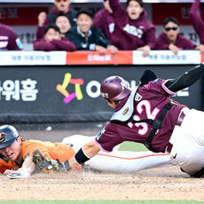 2026.03.28 18: 47한화 개막전 끝내기 승리 발판 만든 문현빈 홈 슬라이딩