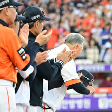 2026.03.28 18: 47개막전 끝내기 승리 거둔 한화 김경문 감독, '선수들에게 모자 벗어 인사 전하고'