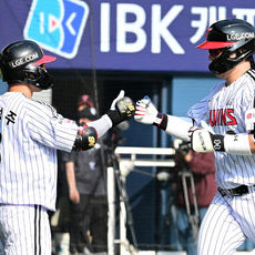 손호영과 기뻐하는 윤동희