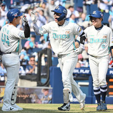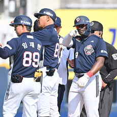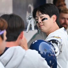 2026.03.28 15: 19신나게 3점 홈런 축하받는 박건우