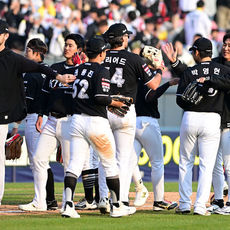 2026.03.29 22: 42첫승 기쁨 나누는 두산 선수들