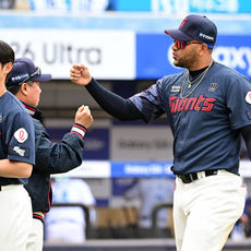 2026.03.29 22: 52김태형 감독과 기뻐하는 레이예스
