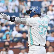 2026.03.29 15: 22박건우, 이틀 연속 홈런포 세리머니