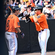 2026.03.29 15: 03강백호, '한화에서 첫 홈런포 쏘아올리고 노시환과 신나는 권투 세리머니'