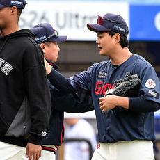 2026.03.29 17: 21역전포 김민석과 하이파이브하는 김원형 감독