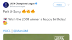 [OSEN=이인환 기자] 시간이 흘렀지만, 유럽 축구는 박지성을 잊지 않았다.유럽축구연맹(UEFA)은25일(한국시간) 공식 트위터와 인스타그램을통해 "박지성, 2007-2008 시즌 UEFA 챔피언스리그(UCL) 우승자의 생일을축하합니다"고 ...
