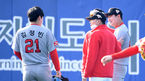 [OSEN=제주, 이대선 기자] SK 와이번스가 7일 제주도 서귀포시 강창학야구장에서 스프링캠프를 열고 훈련을 진행했다.SK 와이번스 김원형 감독이 투수조와 이야기를 나누고 있다. /sunday@osen.co.kr