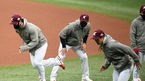 [OSEN=고척, 지형준 기자]키움 히어로즈가 7일 오후 서울 고척스카이돔에서 2021 시즌을 앞두고 스프링캠프를 열고 훈련을 가졌다.이용규, 서건창, 김휘집이 주루 훈련을 하며 이야기를 나누고 있다. /jpenws@osen.co.kr