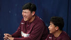 [OSEN=고척, 지형준 기자]키움 히어로즈가 7일 오후 서울 고척스카이돔에서 2021 시즌을 앞두고 스프링캠프를 열고 훈련을 가졌다.훈련에 앞서 김동혁과 장재영이 장난을 치고 있다. /jpenws@osen.co.kr