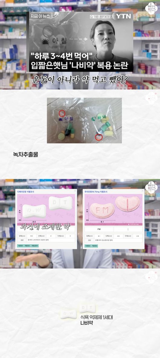 유튜버 입짧은햇님이 코미디언 박나래의 '주사이모'와 연루설에 휩싸인 가운데, 이들이 함께 처방받은 것으로 알려진 다이어트약 '나비약'에 대해 현직 약사가 경고했다.
