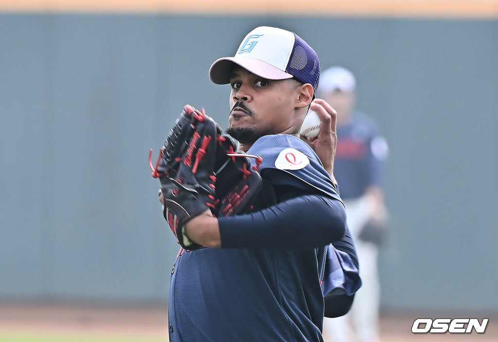 롯데 새 외국인 선수 로드리게스가 투구 훈련을 하고 있다. 2026.01.31 / foto0307@osen.co.kr