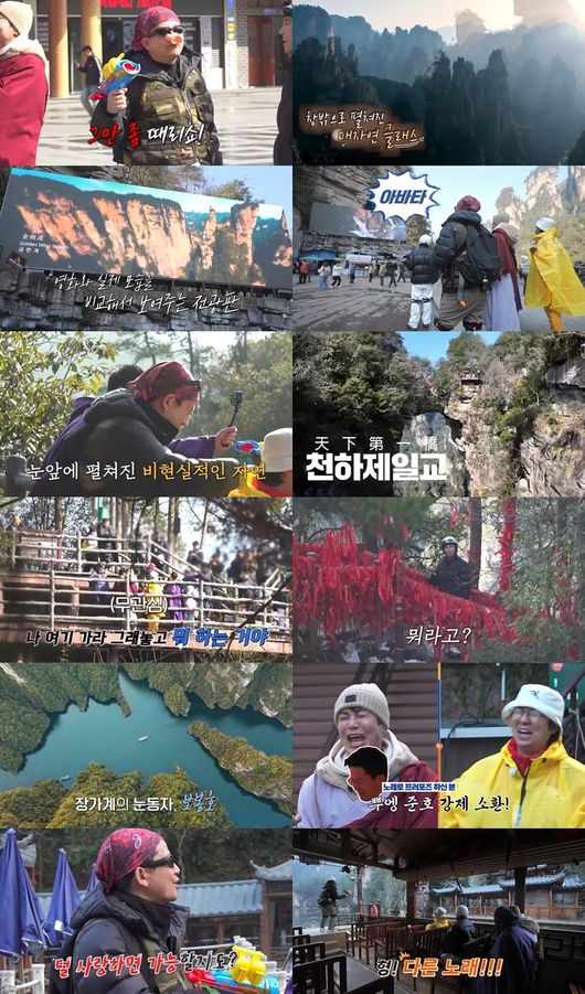 반면 ‘독박즈’는 올라갈수록 시시각각 변하는 장가계의 절경과 기암괴석의 신비로움에 감탄을 연발했다. 정상에서 환상적인 뷰를 즐긴 ‘독박즈’는 다음으로 ‘미혼대’로 갔다. 김대희는 “미혼들만 가는 곳이야?”라고 아재 개그를 시전했고, 목적지에 도착한 홍인규는 “‘아바타’에서 보던 장면이 눈앞에 생생하네!”라며 경탄했다. 김준호도 어느새 고소공포증을 잊고 “대박이다!”라고 외쳤다.