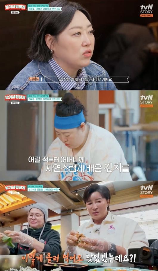 식당에는 박준면이 등장했다. 박준면은 이들을 위해 직접 담근 김치를 들고 왔다. 이영자는 박준면의 손맛에 대해 “친정엄마 스타일이다”라고 말했고, 박준면은 “대단한 건 아니고.. 제가 먹는 거 좋아하니까. 이영자 언니는 교수 수준이고 저는 학생이다”라고 겸손한 모습을 보였다. 이영자는 “나랑 다른 느낌이다. 그냥 정겹다. 김치에 사랑이 있다”라고 덧붙였다.