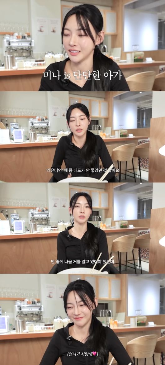더불어 그는 카메라를 향해 하트를 만들어 보이며 최미나수를 향해 "언니가 사랑해"라는 자막을 덧붙여 원만한 관계를 피력했다.