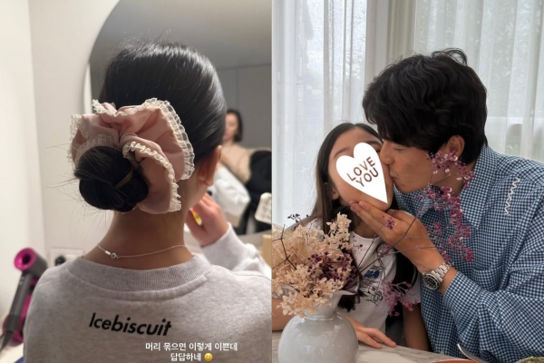 이어 "머리 묶으면 이렇게 이쁜데 답답하네. 아침부터 머리 묶고 가면 안되냐 실랑이"라며 "뒷모습 찍어서 확인도 시켜주고 거절 당함ㅎㅎ 머리카락 국에 들어갈까봐 글치"라는 글과 함께 딸의 뒷모습도 덧붙였다.