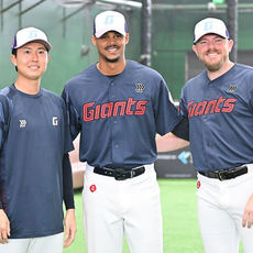 2026.01.31 13: 10포즈 취하는 롯데 새 외국인 투수 쿄야마, 로드리게스, 비슬리
