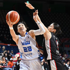 2025.12.19 19: 56김단비와 박혜진, 치열한 리바운드 다툼